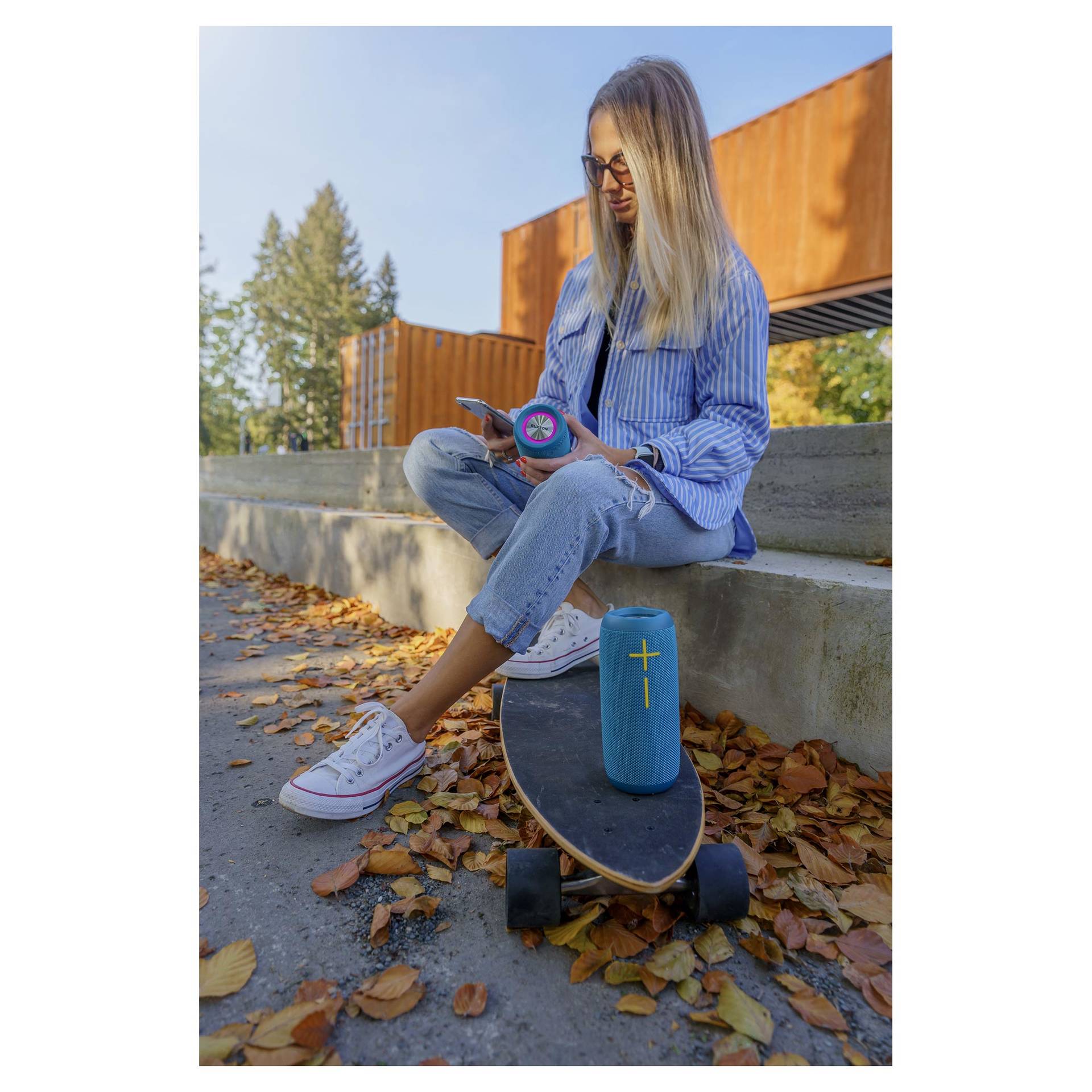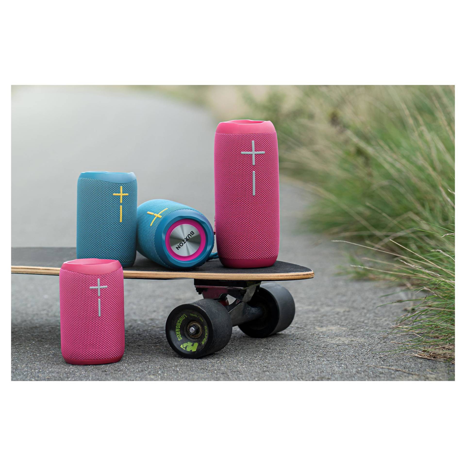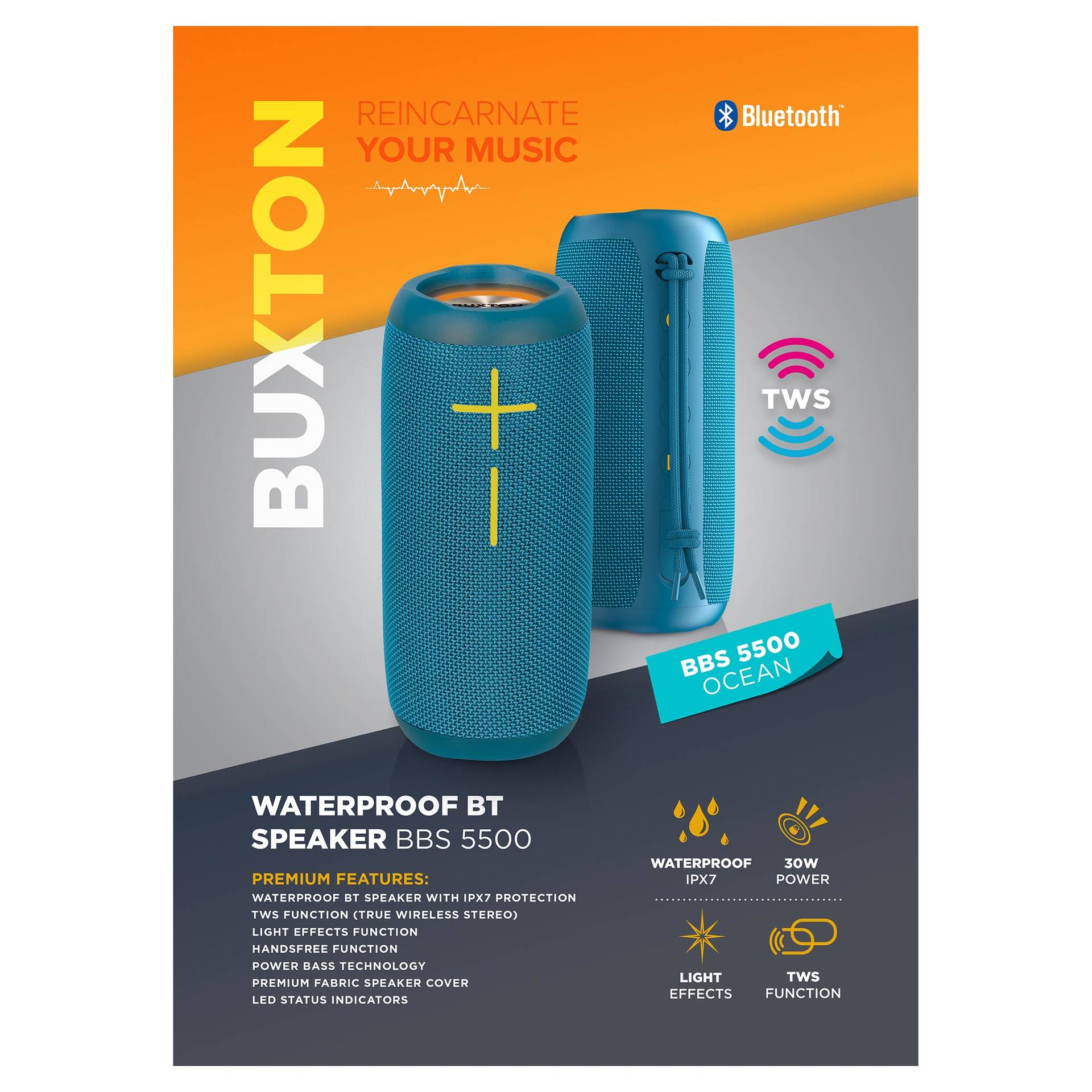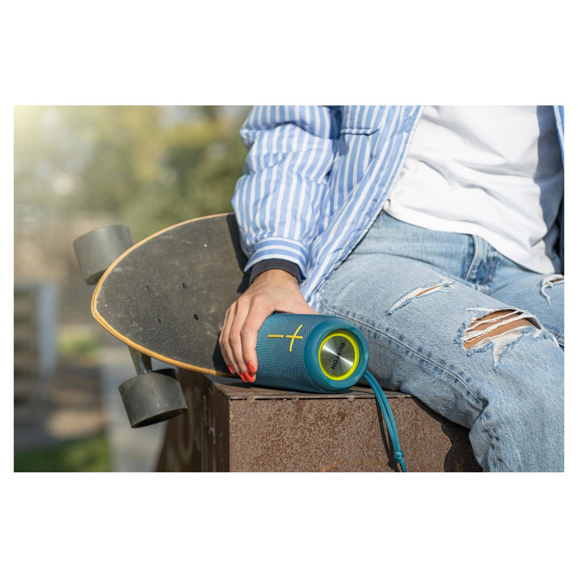 Praktyczny, utalentowany, łatwy do przenoszenia. Głośnik Bluetooth Buxton jest doskonałym źródłem czystej i zaskakująco dynamicznej reprodukcji muzyki i słów. Na pierwszy rzut oka trudno uwierzyć, jak dobrze brzmi ten niewielki głośnik. I można go połączyć bezprzewodowo przez TWS z innym systemem BBS 5500! Te bliźniaki dostarczą solidną moc 60 W, więc niezależnie od tego, czy impreza odbędzie się w salonie, w ogrodzie, wśród bloków czy na łące, dźwięk będzie na pewno doskonały. Pełnozakresowy głośnik typu „Racetrack” jest uzupełniony dwoma pasywnymi głośnikami, Power Bass z kolei pobudza basy. Możesz grać w dowolnym miejscu – po naładowaniu baterii do pełna i ustawieniu głośności na połowę głośnik może grać bez przerwy nawet przez dziewięć godzin! Teraz wystarczy tylko wybrać muzykę i można dać czadu.