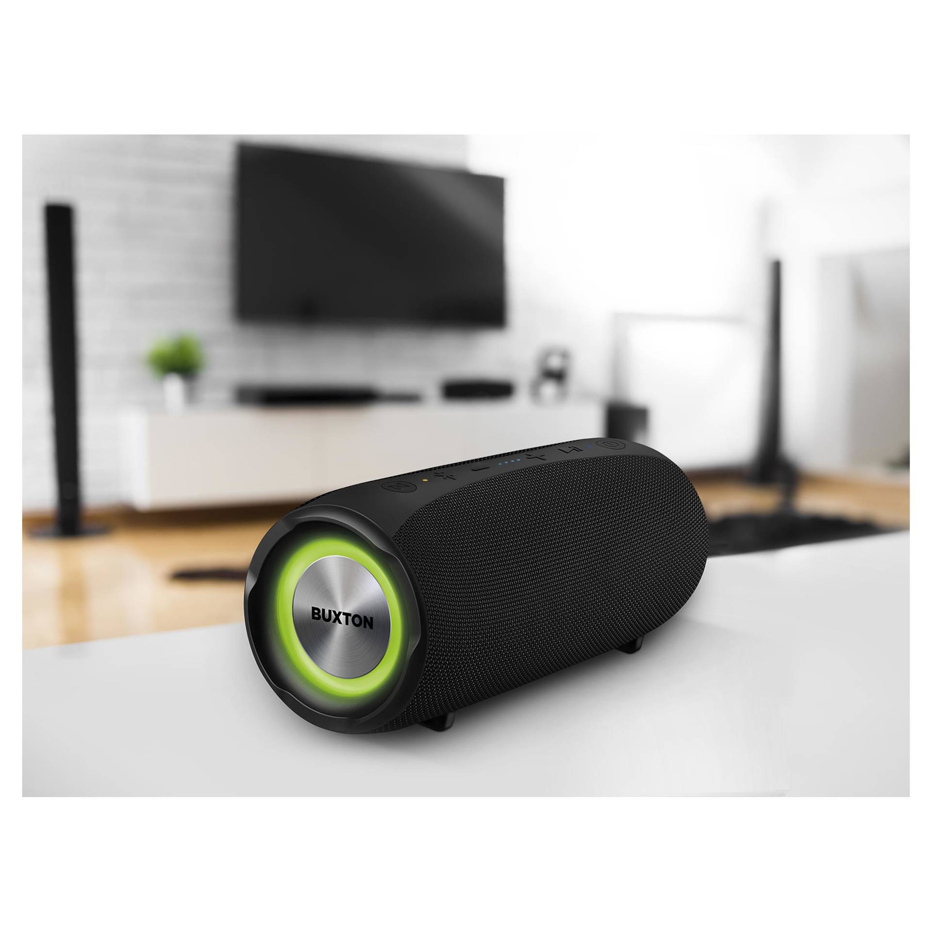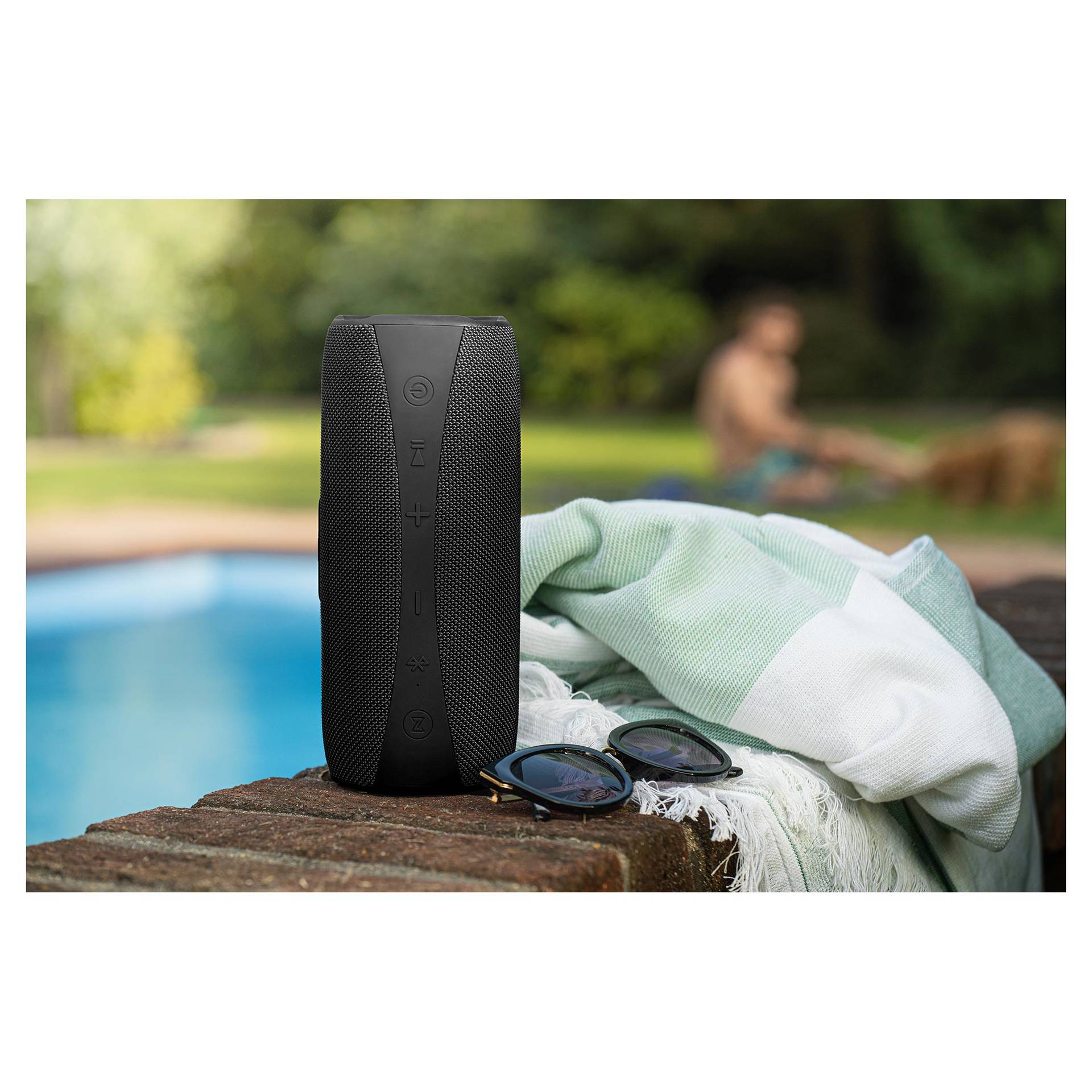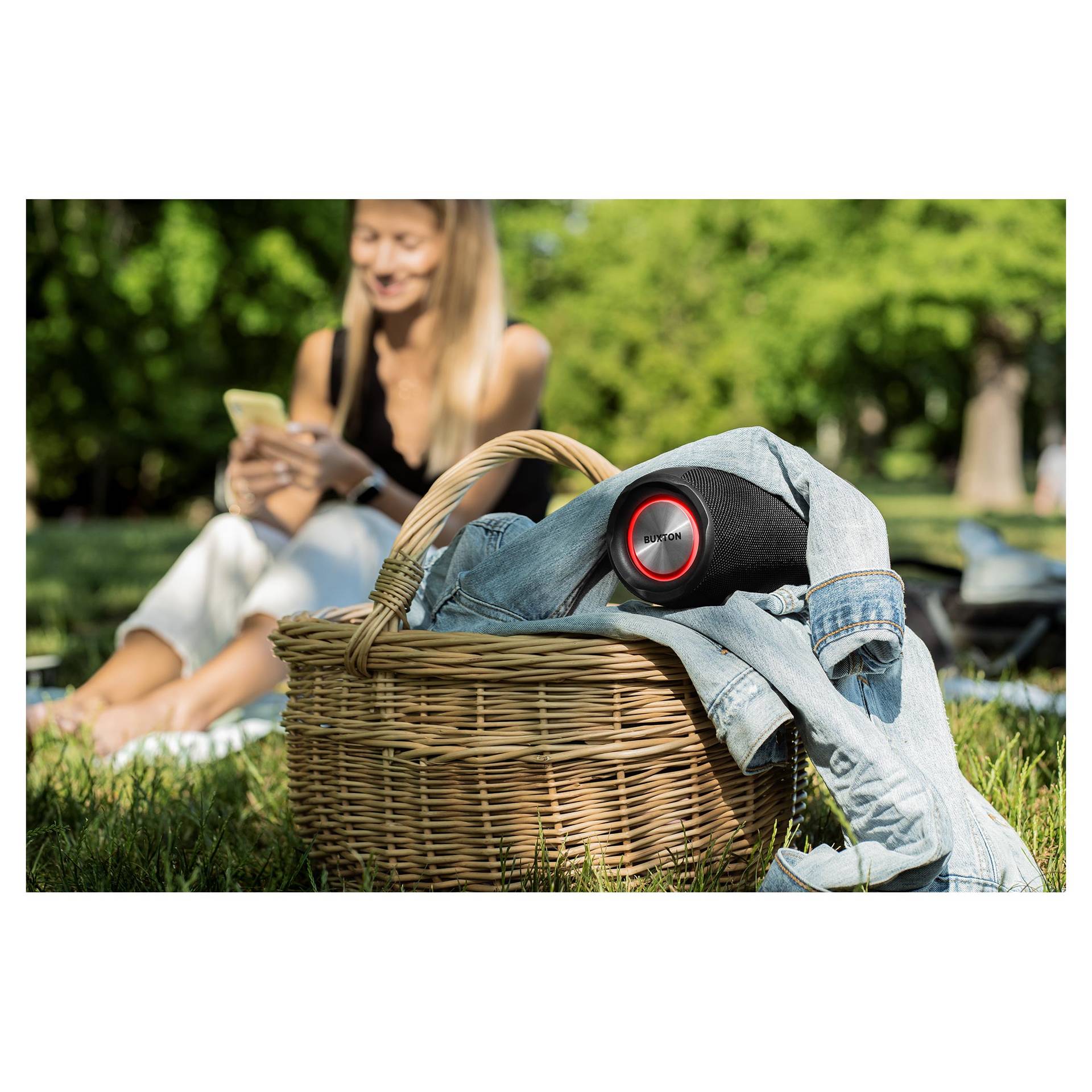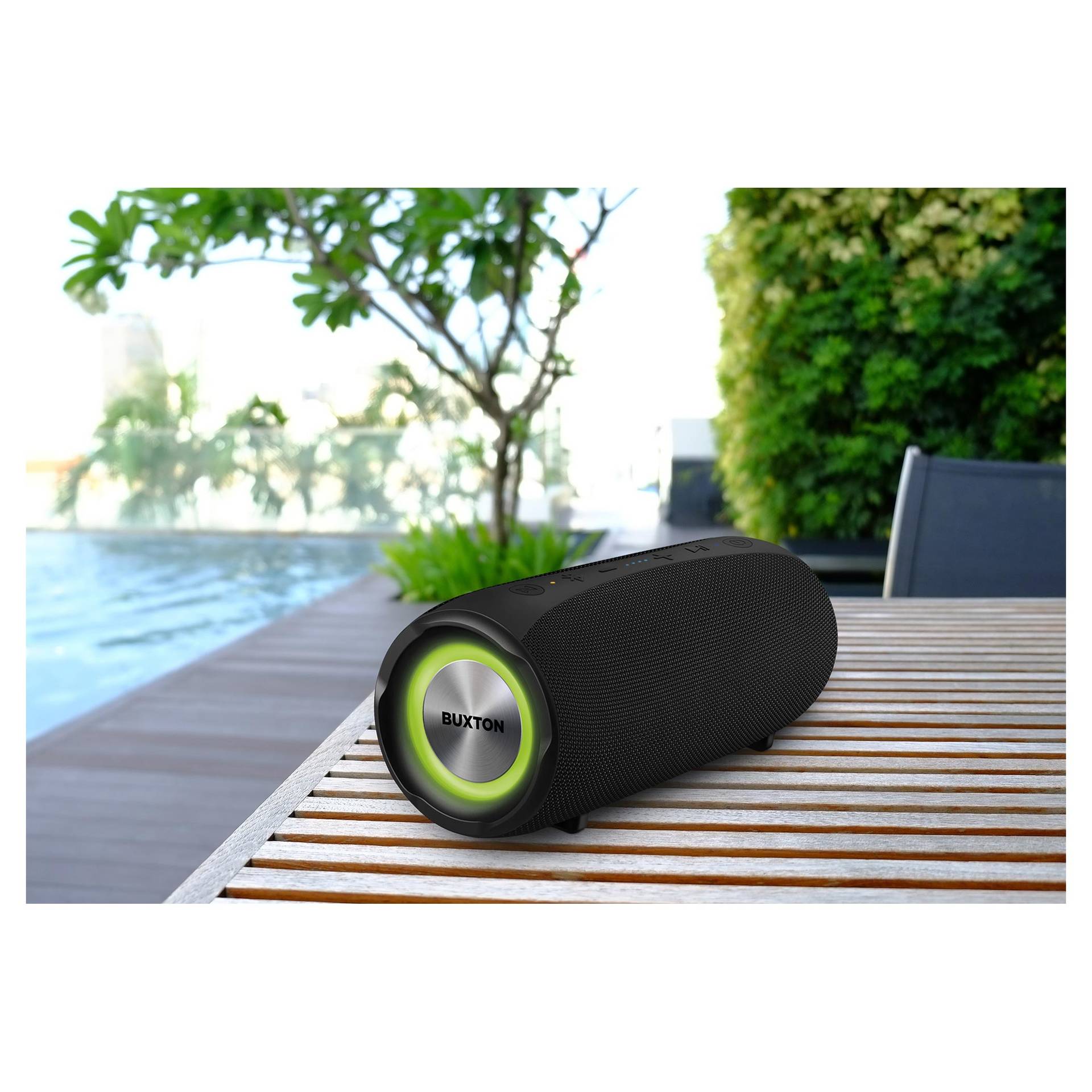 Wydajność i dźwięk głośnika bezprzewodowego Buxton BBS7700 są doskonałe nie tylko w pomieszczeniach, ale przede wszystkim na imprezach plenerowych, gdzie można doskonale wykorzystać jego wytrzymałość. Nieważne, jak bardzo pada deszcz - nie sprawia mu to żadnych trudności. Klasa wodoszczelności IPX7 oznacza, że woda nie dostanie się do środka, nawet jeżeli zanurzysz głośnik pod wodą na pół godziny. Prawdę mówiąc, prawdopodobnie nie skorzystasz z tej opcji, ale jest to dobry wskaźnik tego, co to urządzenie jest w stanie wytrzymać. Wyposażenie? Port USB, wejście AUX-IN, zestaw głośnomówiący... A do tego naprawdę potężny bank energii. Co więcej, ma świetny wygląd, jest ubrany w najwyższej jakości tkaninę w modnym czarnym kolorze. Jest po prostu genialny.