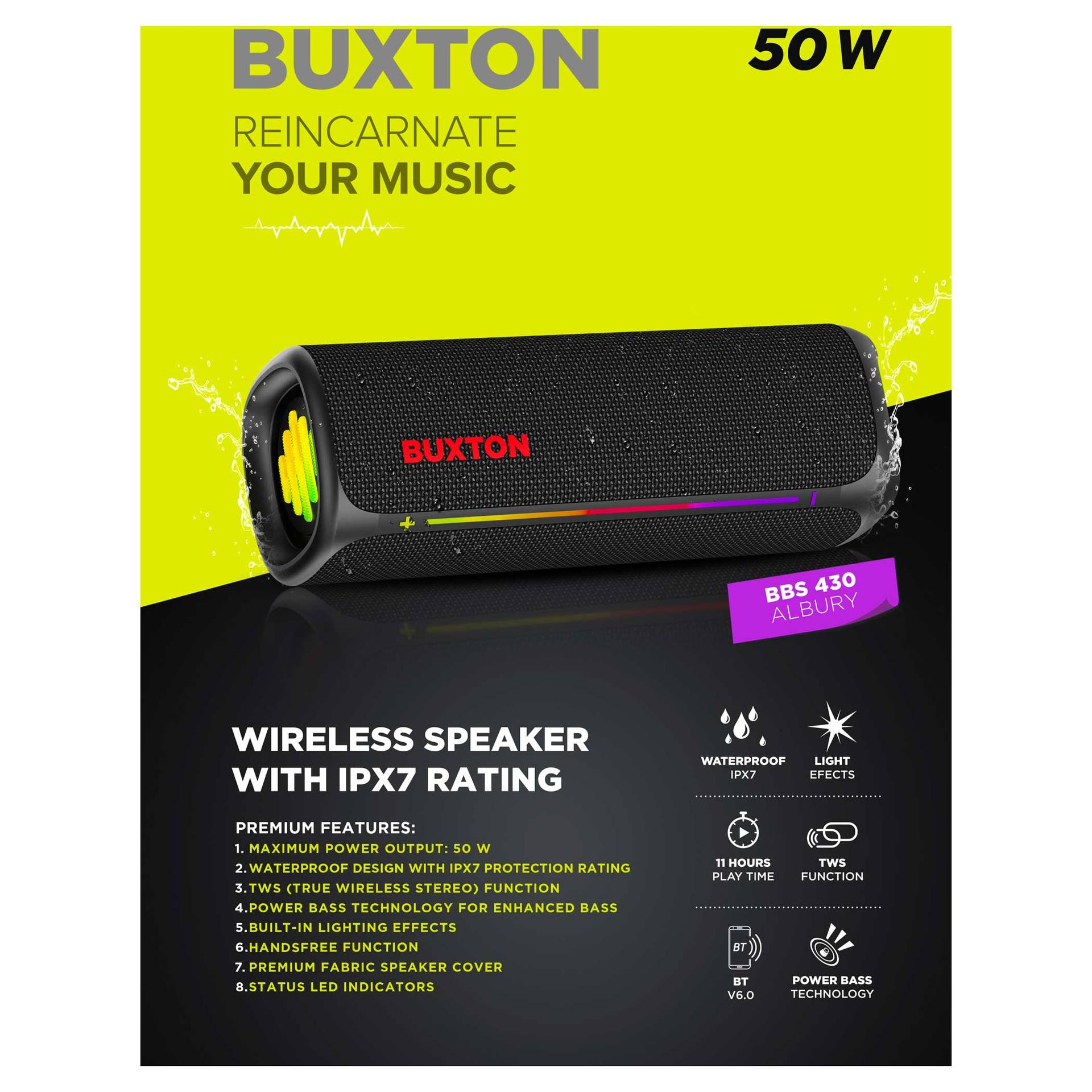 Zawartość opakowania: Głośnik BT, kabel ładujący USB, instrukcja obsługi