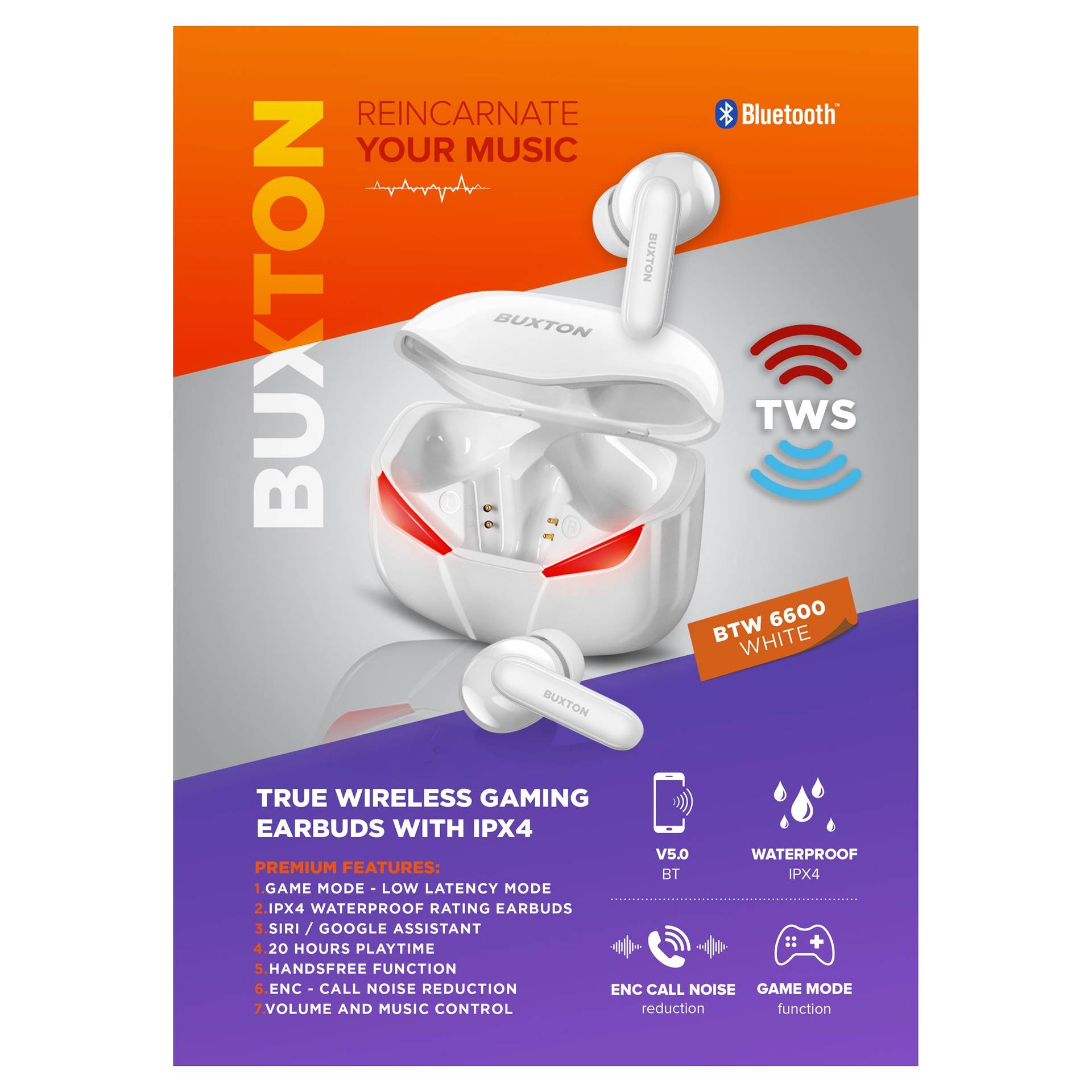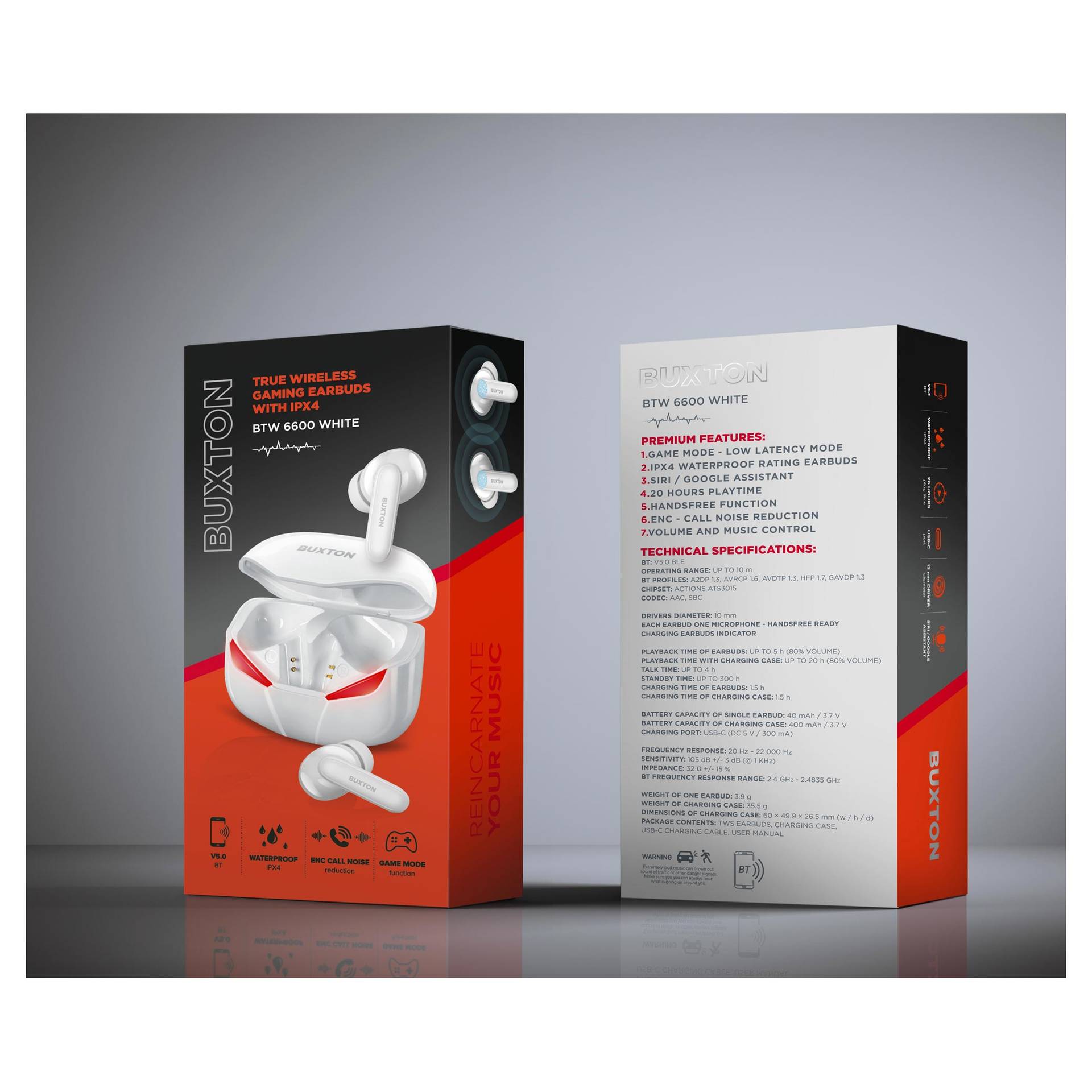 Cechą „must have” jest zdecydowanie tryb gry, który automatycznie wkracza do walki o lepsze doświadczenia i przynosi ze sobą tryb niskiego opóźnienia. Dzięki wodoodpornemu certyfikatowi IPX6, model BTW 6600 przetrwa nawet zachlapanie wodą, więc nie zatrzyma Cię deszcz ani kapiący pot. Chodźmy dalej. Gry i sporty są jasne. A co z odbieraniem telefonów? Ponownie - nie ma problemu! Każda słuchawka wyposażona jest w zintegrowany mikrofon z funkcją zapewniającą eliminację hałasu otoczenia podczas rozmowy.