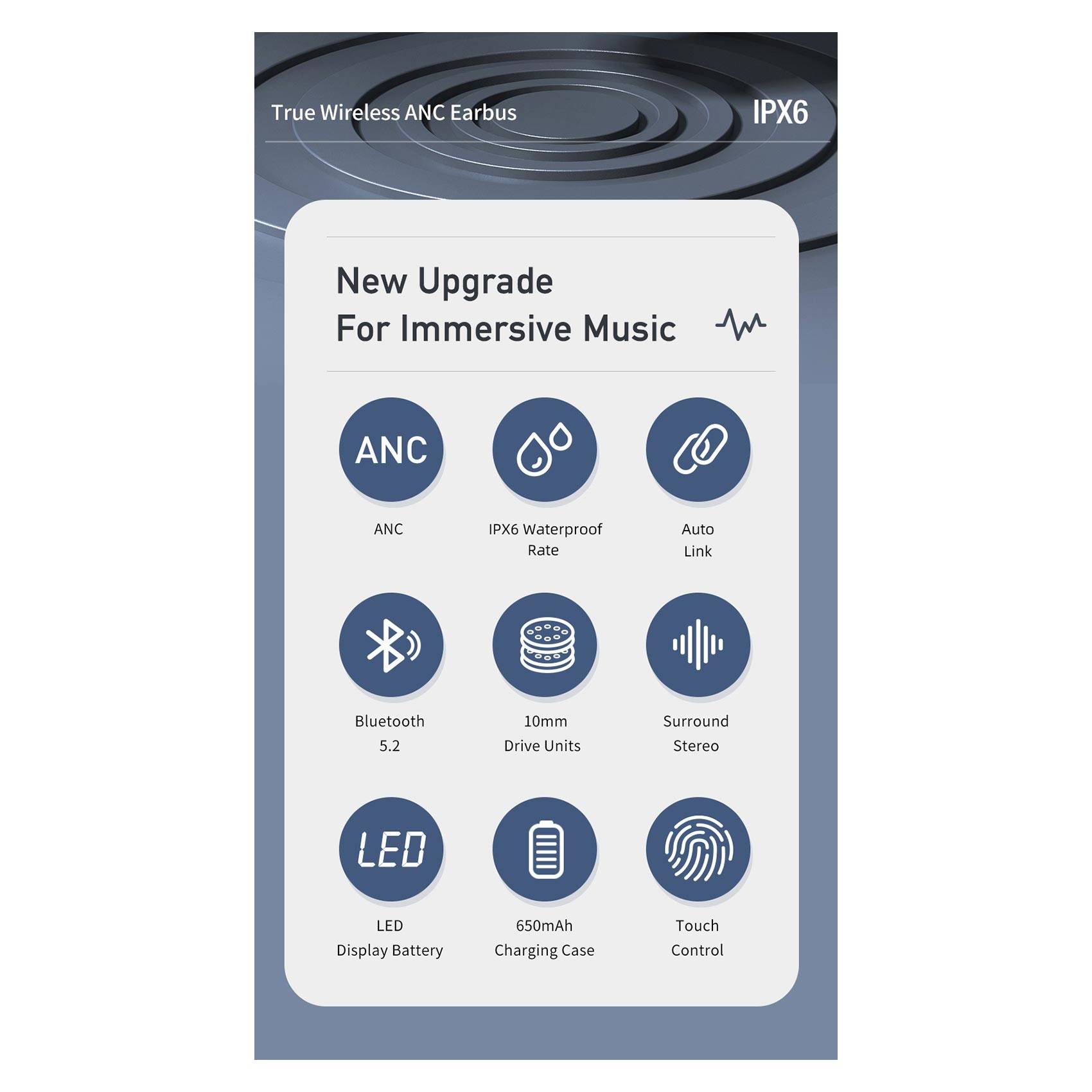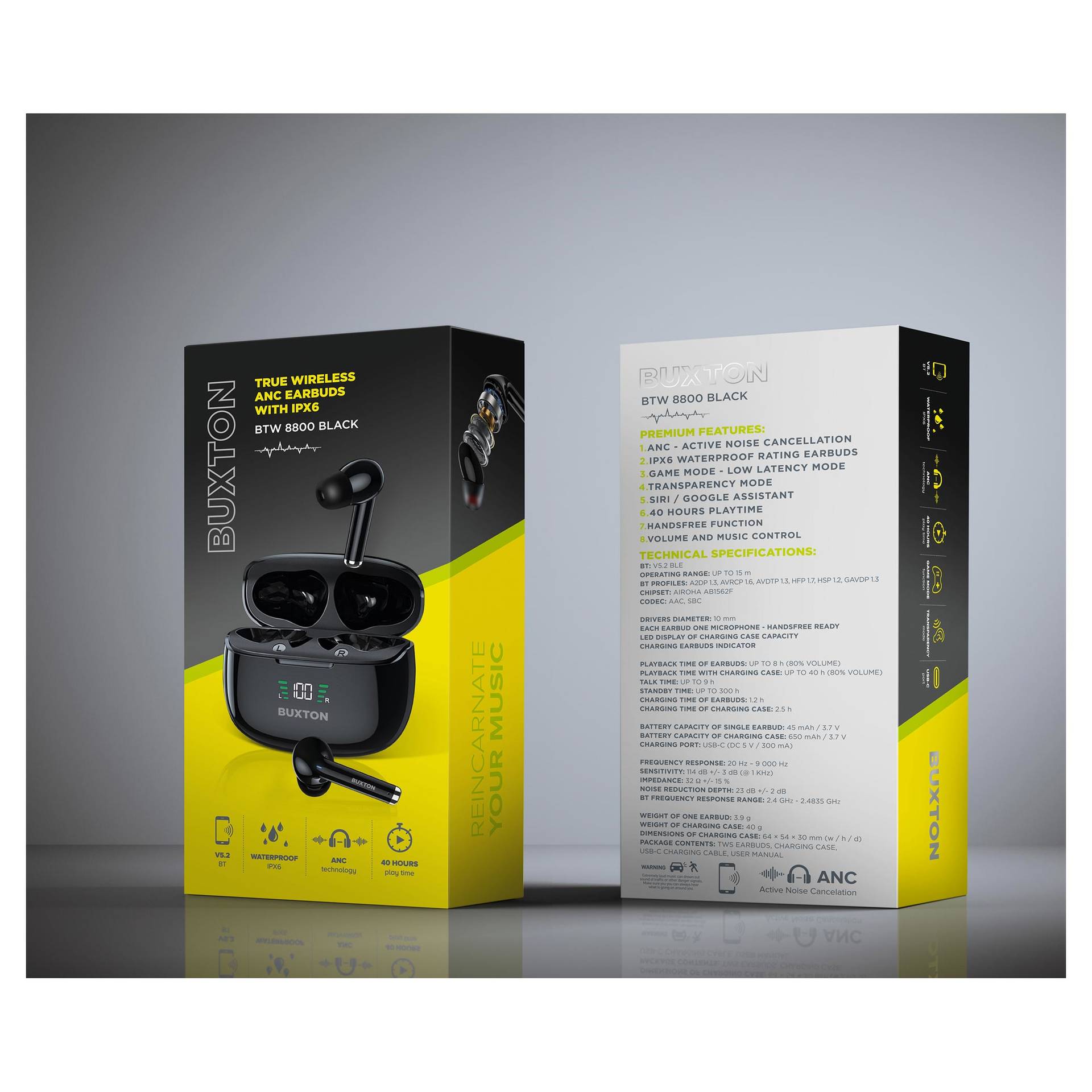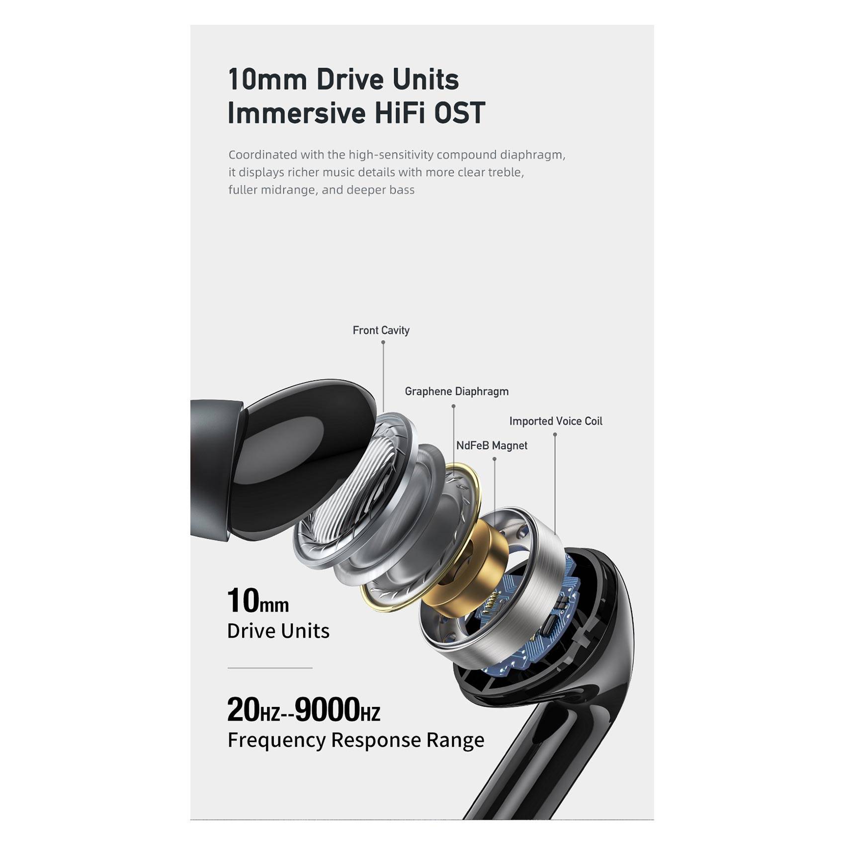 Zawartość opakowania: Słuchawki TWS, etui ładujące, kabel ładujący USB-C, instrukcja obsługi