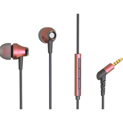 Ekskluzywne metalowe słuchawki ze zintegrowanym mikrofonem i pilotem zdalnego sterowania.