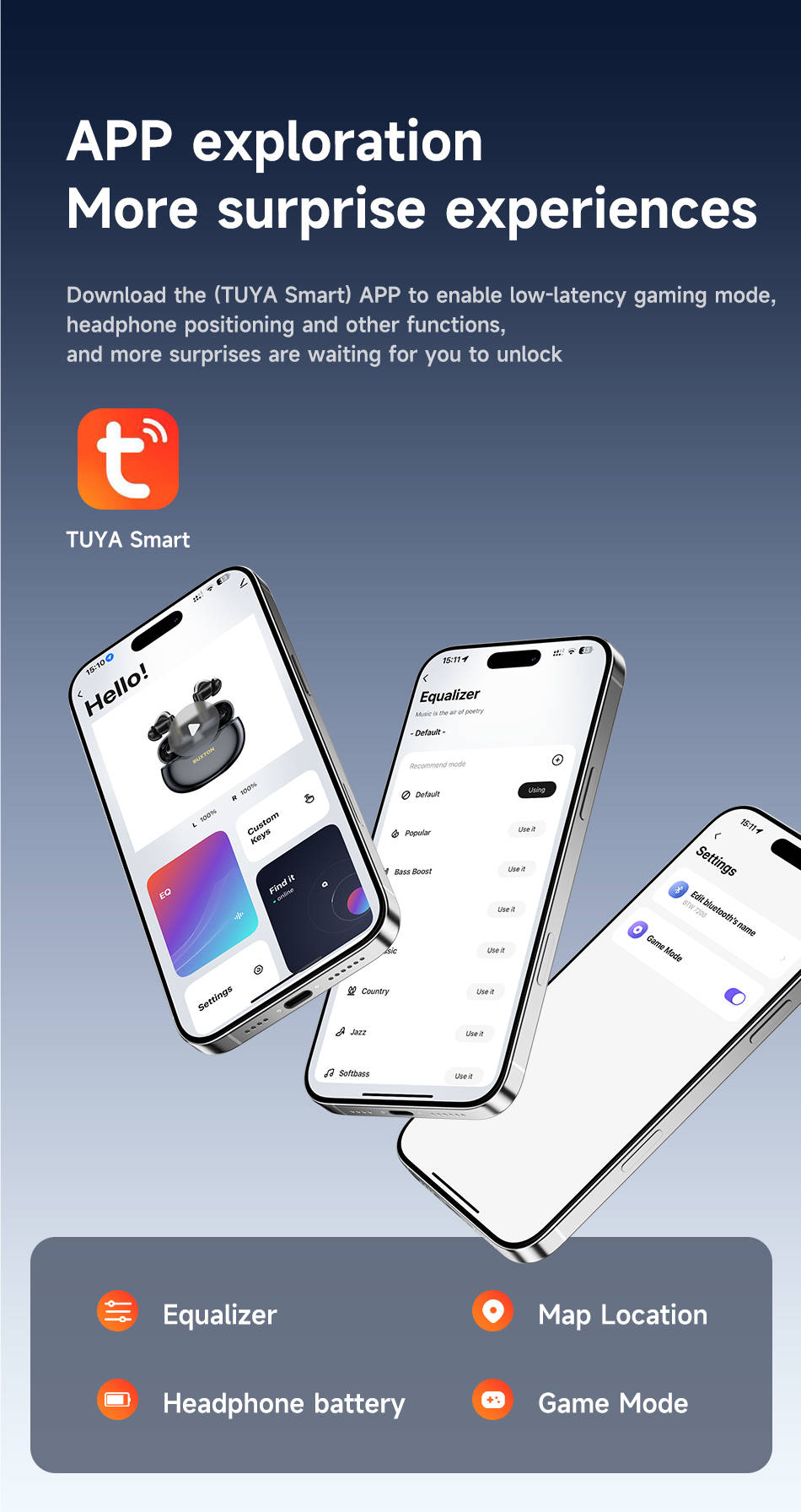 Inteligentne słuchawki bezprzewodowe BUXTON BTW 7200 TUYA łączą w sobie wysoką jakość dźwięku i intuicyjne sterowanie. Dzięki aplikacji Tuya Smart, którą można pobrać bezpłatnie, można wygodnie sterować i dostosowywać funkcje słuchawek. Możesz sprawdzić stan naładowania, wybrać profil korektora, ustawić funkcje sterowania dotykowego, sterować odtwarzaniem, a nawet wyświetlić bieżącą lokalizację słuchawek na wypadek ich zgubienia. Zestaw słuchawkowy oferuje tryb gier z niską latencją do gier mobilnych lub oglądania filmów. Słuchawki wykorzystują Bluetooth 5.4 z zasięgiem do 50 metrów od sparowanego urządzenia. Każda słuchawka jest wyposażona w mikrofon, dzięki czemu są gotowe do prowadzenia rozmów w trybie głośnomówiącym.