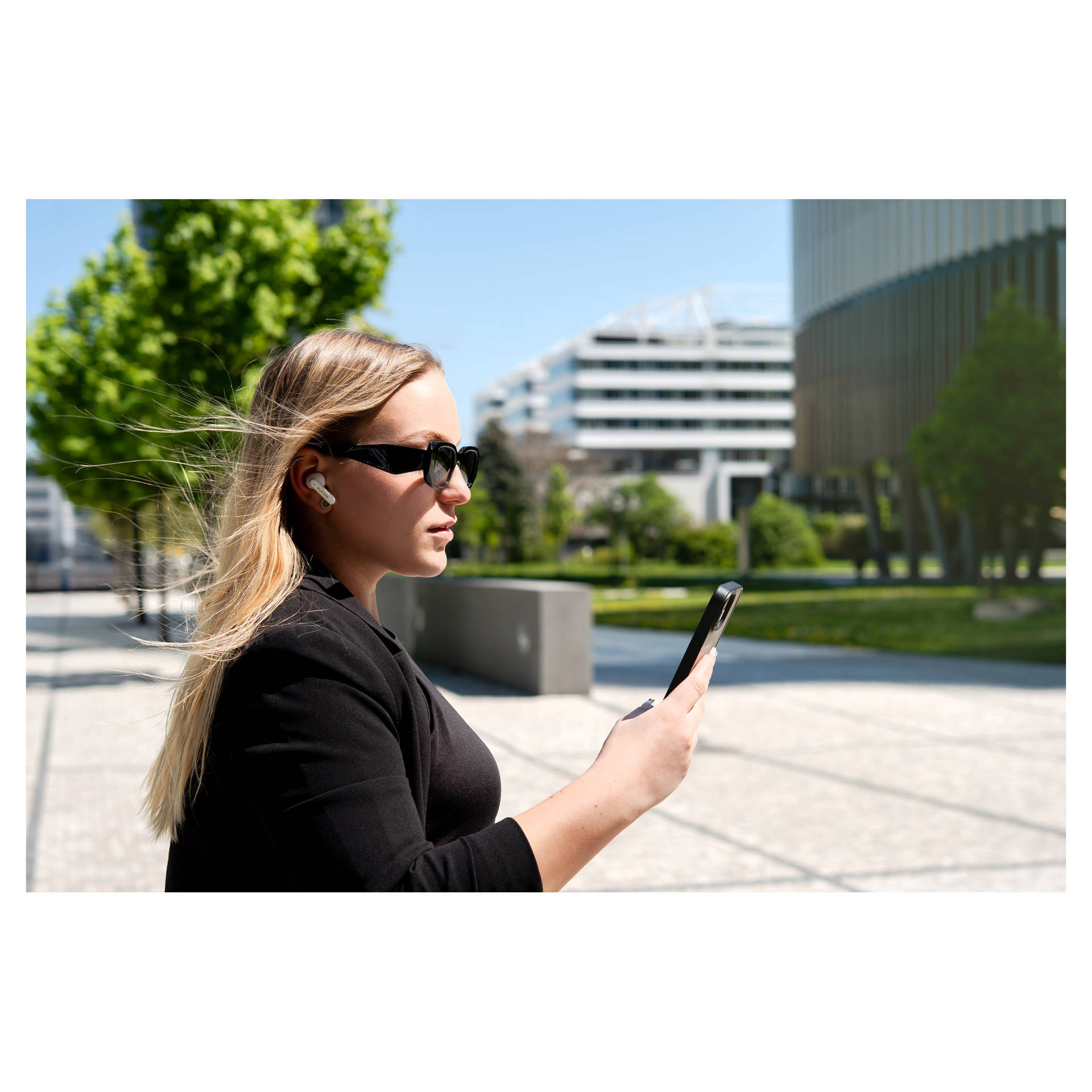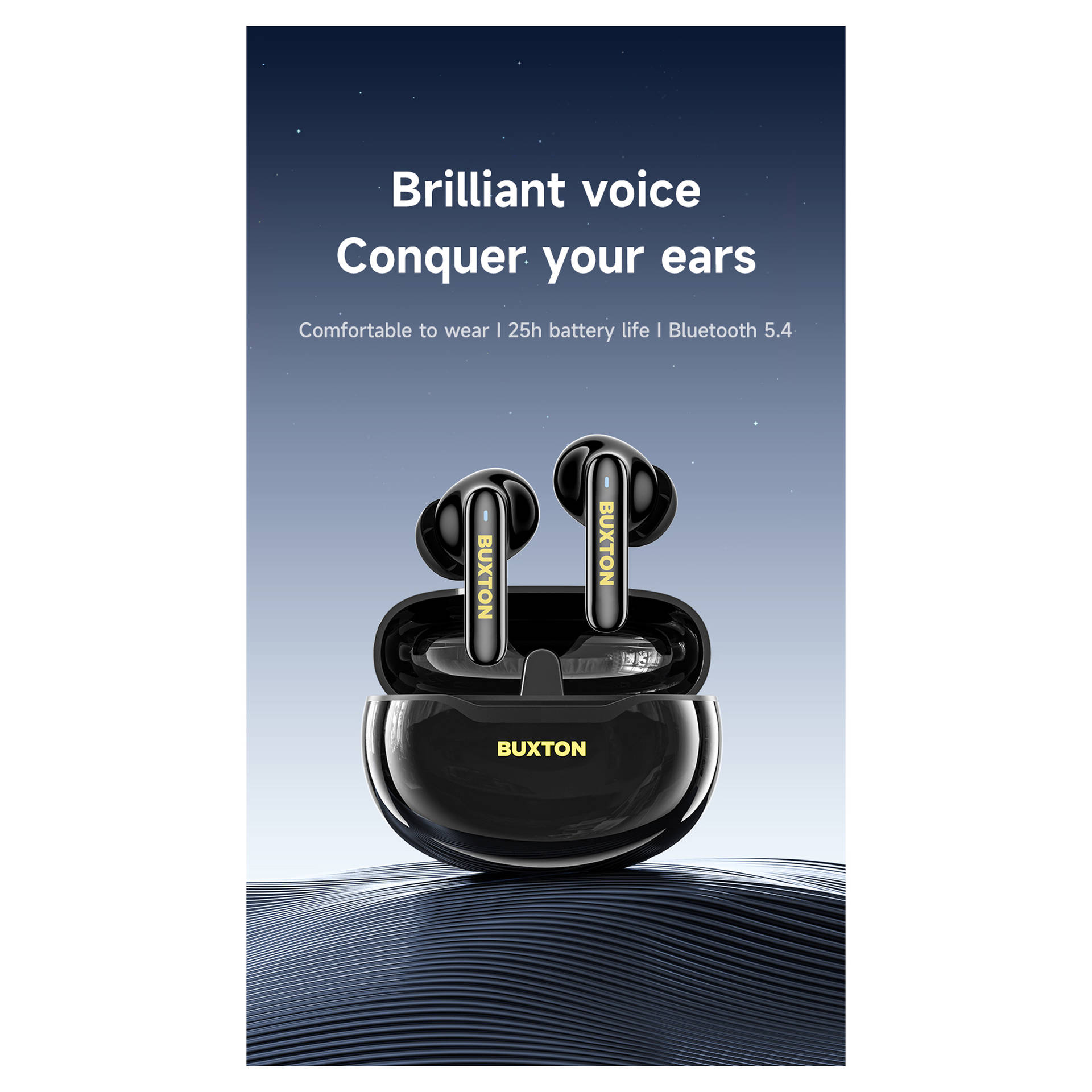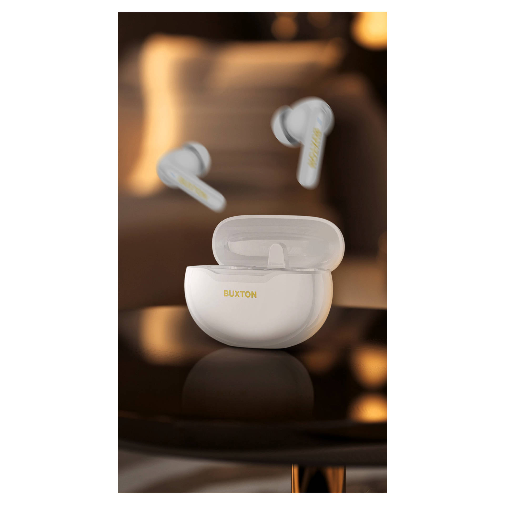 Dzięki certyfikatowi odporności na wodę i wilgoć IPX6, bezprzewodowe słuchawki BUXTON nadają się również na deszczowe dni lub do aktywnego uprawiania sportu. Całkowity czas pracy słuchawek na baterii z dołączonym etui ładującym wynosi do 25 godzin. Czas ładowania słuchawek w etui wynosi 1 godzinę, a całego etui 1,5 godziny. Ładowanie odbywa się przez USB-C. Słuchawki umożliwiają wygodne sterowanie odsłuchem i połączeniami za pomocą dotyku – bezpośrednio na obudowie słuchawek. Ergonomiczny kształt nauszników sprawia, że słuchawki są wygodne i przyjemne w noszeniu. Słuchawki obsługują asystentów głosowych Siri i Google.