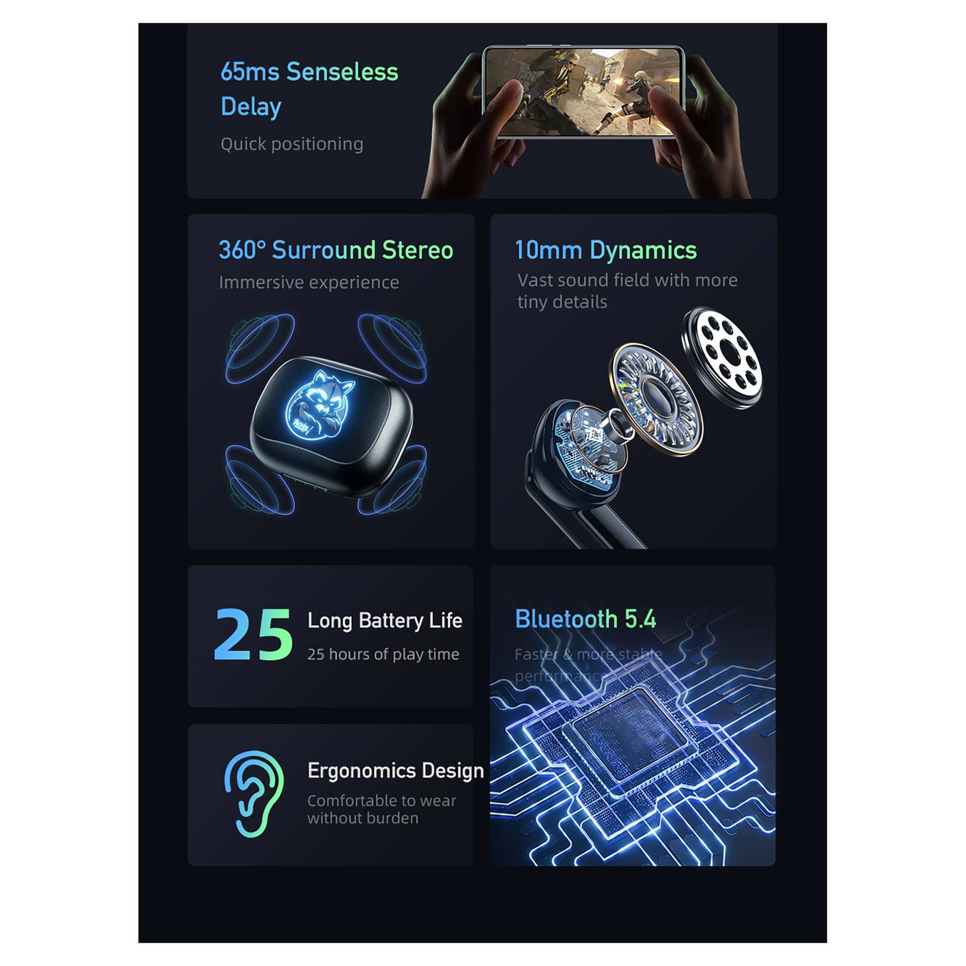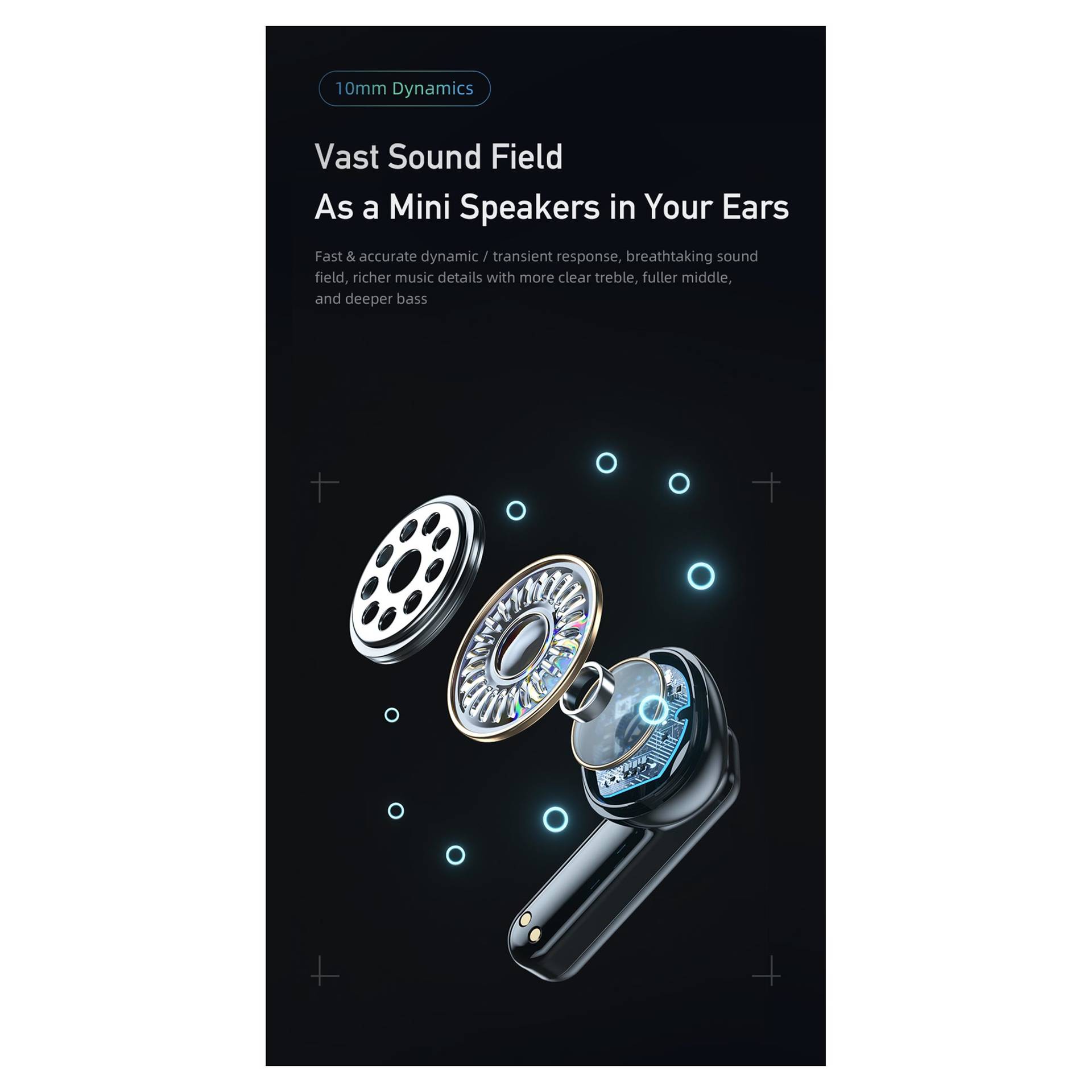 Zawartość opakowania: Słuchawki TWS, etui ładujące, kabel ładujący USB-C, instrukcja obsługi