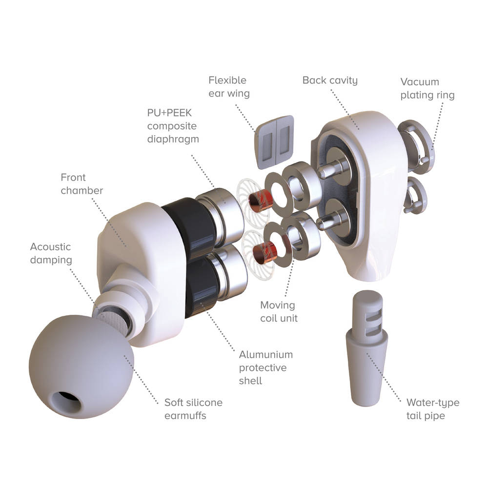 W każdej słuchawce znajdziesz dwa konwertery premium do słuchania wysokiej jakości. Każdy z nich ma średnicę 7mm. Dzięki dynamicznemu Głośnikowi słuchawki mają idealnie wyważoną moc dźwięku i neutralną wydajność bez zniekształceń i uciętych wysokich tonów.