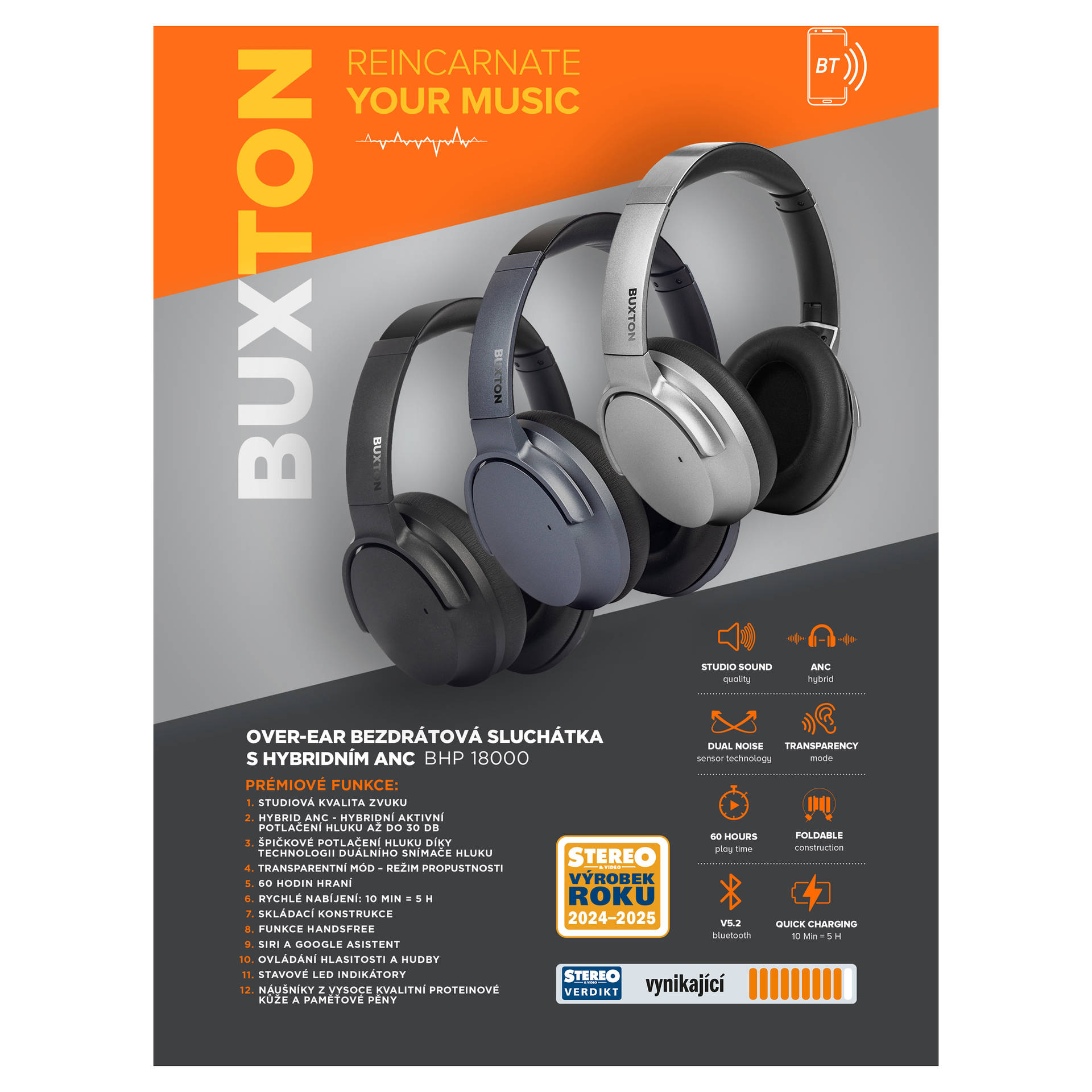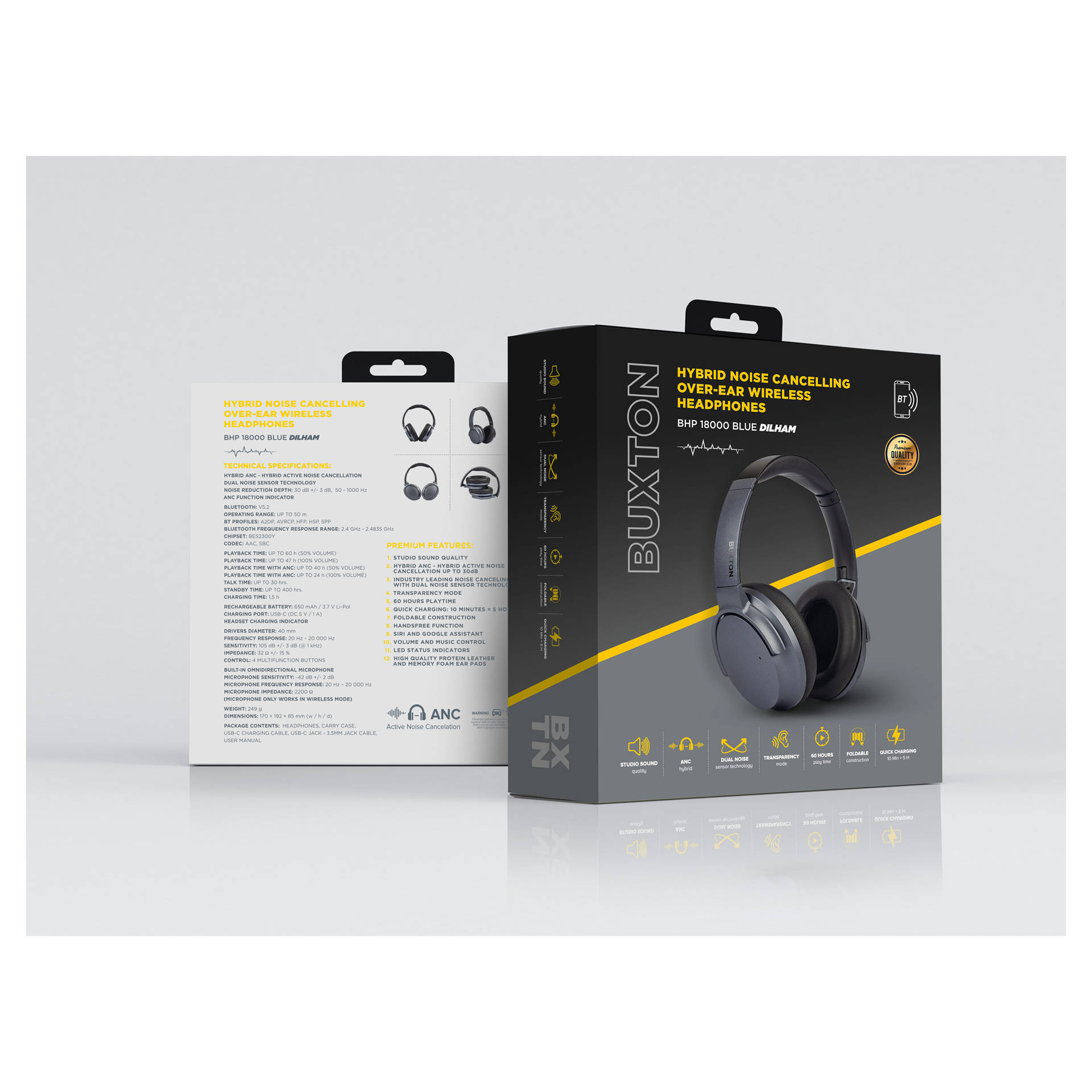 Zawartość opakowania: Słuchawki, etui ochronne, kabel ładujący USB-C, kabel USB-C Jack – 3,5 mm Jack, instrukcja obsługi