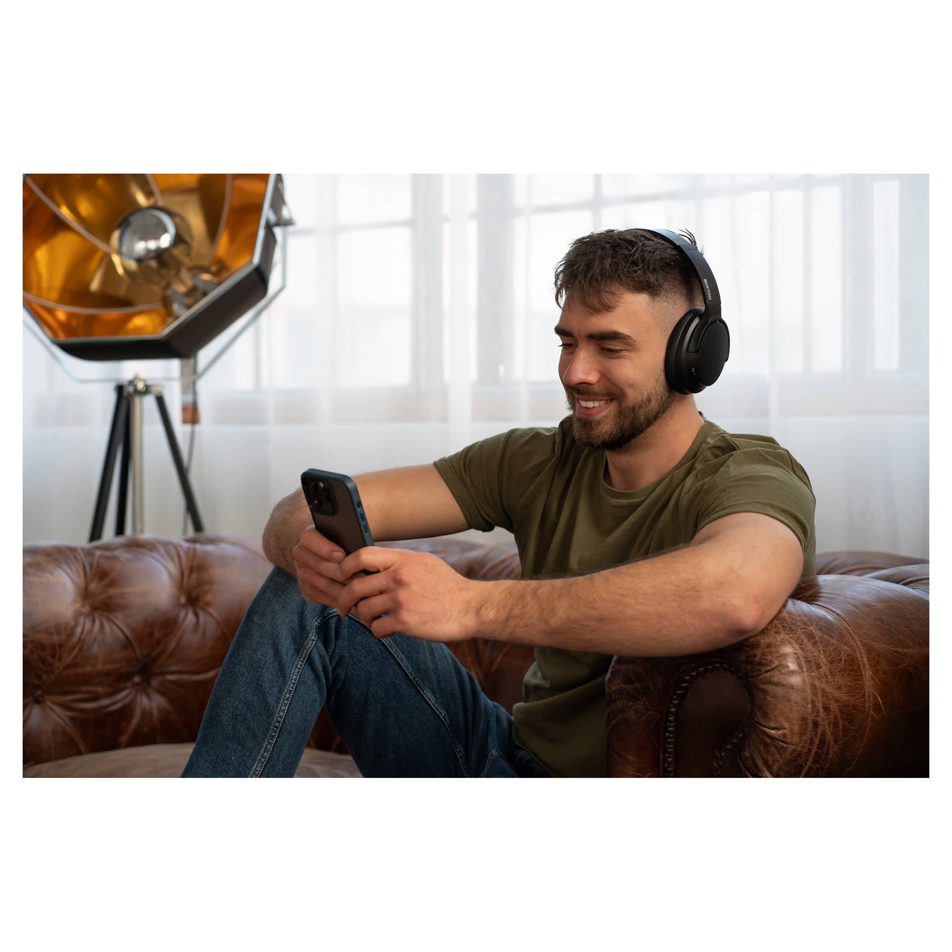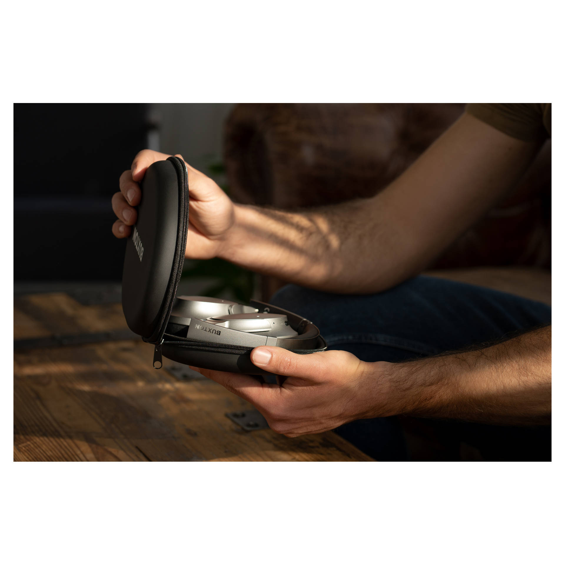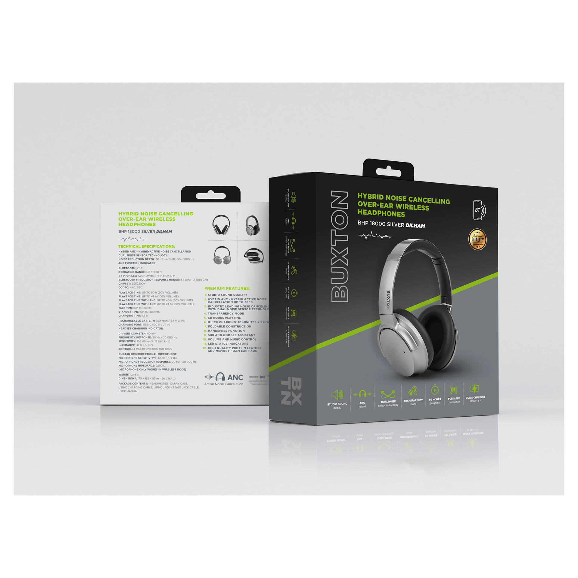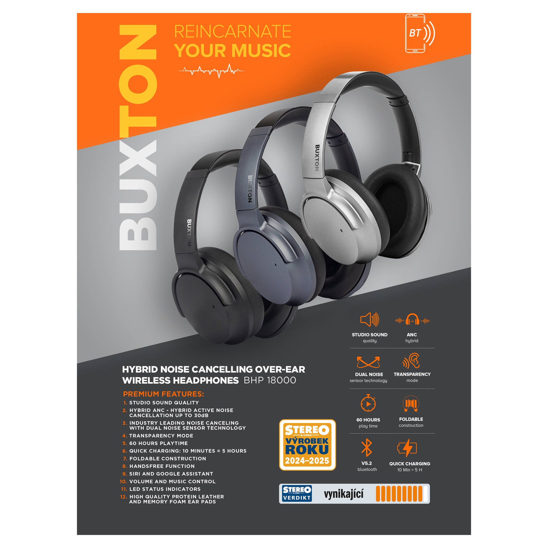 Bezprzewodowe słuchawki BUXTON BHP 18000 DILHAM zapewniają studyjną jakość słuchania muzyki dzięki zaawansowanej funkcji Hybrid ANC, która zapewnia aktywną redukcję szumów otoczenia do 30 dB. 4 przyciski wielofunkcyjne umożliwiają łatwe przełączanie między muzyką lub ulubionym podcastem, a także regulację głośności. Eliminuje to konieczność wyjmowania telefonu z kieszeni. Komfort noszenia słuchawek bezprzewodowych zapewniają nauszniki z pianki z pamięcią kształtu i skóry proteinowej. Są miękkie i nie uciskają, dzięki czemu idealnie nadają się do codziennego noszenia po mieście, podczas uprawiania sportu, ale także w podróży.